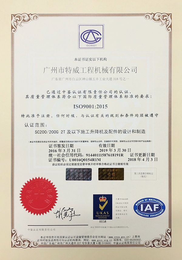 廣州市特威工程機械有限公司地處廣州市白云區神山鎮,廣清高速神山出口附近,是一家施工升降機的專業生產廠家。公司成立于2011年,占地100000多平方米,注冊資金1060萬元,現有員工300余人其中工程技術人員33人,高級技術人員52人。